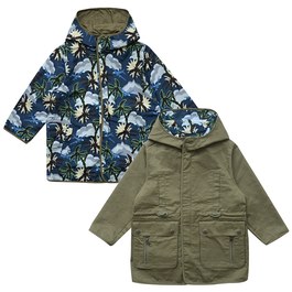 夏威夷印花防風連帽長版外套(兩面穿)