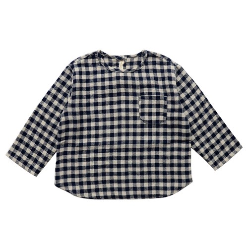 Baby 無領格紋口袋上衣
