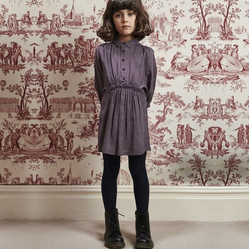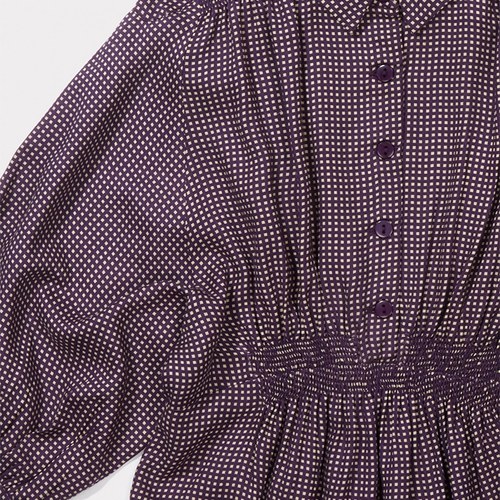 Moonstone 有領格紋洋裝_深紫色