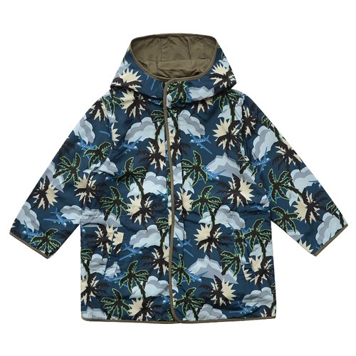 夏威夷印花防風連帽長版外套(兩面穿)